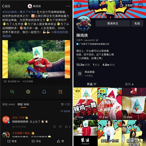 产品血液里拥有爆品基因的“辣鸡侠”薯片,无疑会在品牌营销上对零食市场发起一场‘降维打击’。如2020年的“辣鸡一舞”事件营销,就在线上引起了巨大的反响。在接近零广告费用投入的情况下,获得全网3千万观看及数百万点赞互动,通过IP赋能产品,高效地解决线上线下的品牌推广及动销难题。
