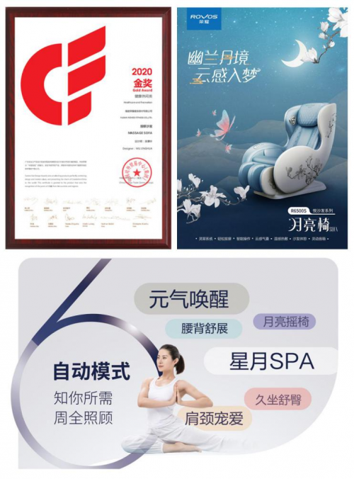 R6500S月亮椅SOFA,以精致小巧的外形,符合人体工程学设计,智能的按摩程序与手法吸引不少人的关注与喜爱,外侧木兰花的设计更是锦上添花,优雅高洁,完美融合家居单人小沙发与按摩椅的创新融合,而且性价比极高,满足年轻一族的按摩享受和娱乐休息需求,为生活“减负”。月亮椅获得过“2020年广交会出口产品设计金奖”殊荣,坚持创新,专注产品设计与科技研发,才有了ROVOS如今的成就和美誉。
