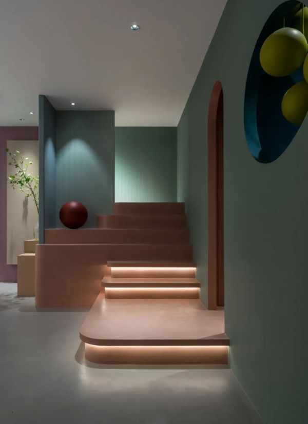 设计师对色彩的揣摩、弧形的演绎,赋予了两个空间之间更多探索的可能性,让顾客沉浸其中。