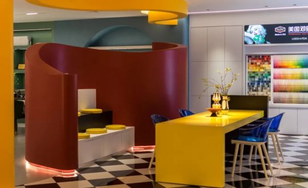 擅长用色彩打造空间的六添设计事务所设计师张天,全新商业展示空间作品亮相湖北宜昌,她将一个传统涂料展示销售店改头换面,重塑了涂料的选购方式,打造了一个韵律感十足的色彩体验空间。