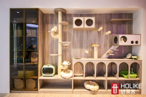 好莱客潮家设计,将喵星人的娱乐场所巧妙与人居空间相融,让猫的活动空间与主人的活动空间更科学自然地结合。