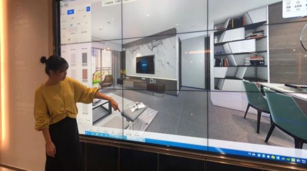 走进冠珠瓷砖新建的线下旗舰店,消费者经常会看到这样一个互动大屏:它除了可以用1:1的比例呈现消费者感兴趣的案例,还可以实现实时交互,这也是新明珠集团自己研发的产品。