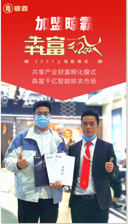 什么样的品牌更有优势和魅力?晾霸用产品无声彰显。作为高端智能晾衣机行业的领先品牌,晾霸用产品打造阳台电器的无限可能,不断夯实品牌竞争力。晾霸高端智能晾衣机,助力合作伙伴2021快速发展,犇富千亿智能晾衣市场!