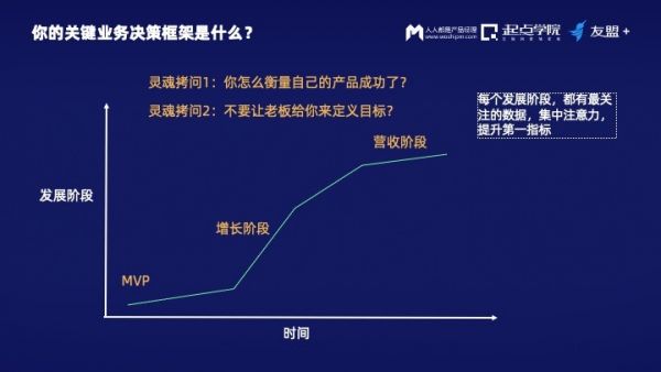 很多老板未必可以在当下设定一个非常合理的目标;一旦设定一个目标,你被迫或者被动去接纳了这个目标以后,接下来的工作会变形,因为任何一个产品都有不同的产品所处的生命周期阶段——从MVP 、增长再到稳定的变现营收阶段,核心点都是不同的。