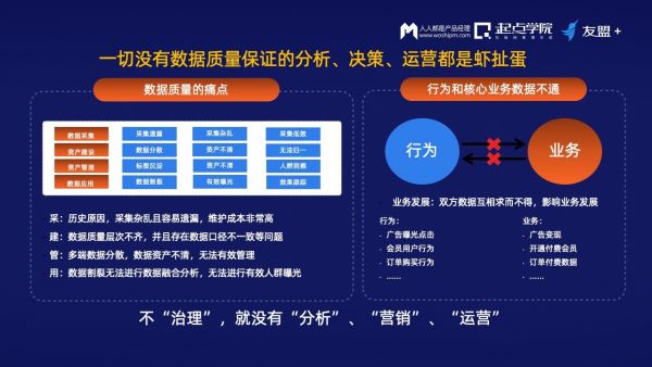 很多公司经常忽略的一点就是数据采集:在公司内部需要很清晰的看到一个产品的触点以及数据效果。具体的北极星指标是什么?很多人都在讲“要做AI/智能,但没有数据质量保证的数据分析、决策、运营,一切都是虾扯蛋!所以,治理,就没有分析营销运营