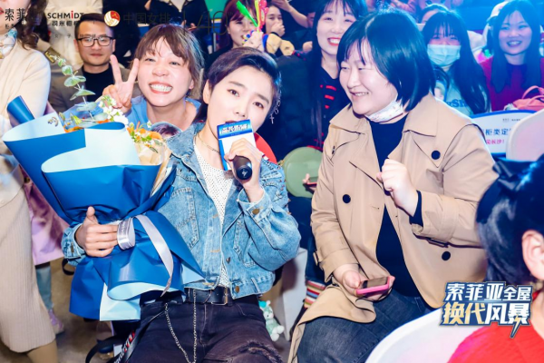 歌手许飞助阵长沙索菲亚,为全屋换代风暴站台,号召现场观众华丽焕新,畅享换代新生活。