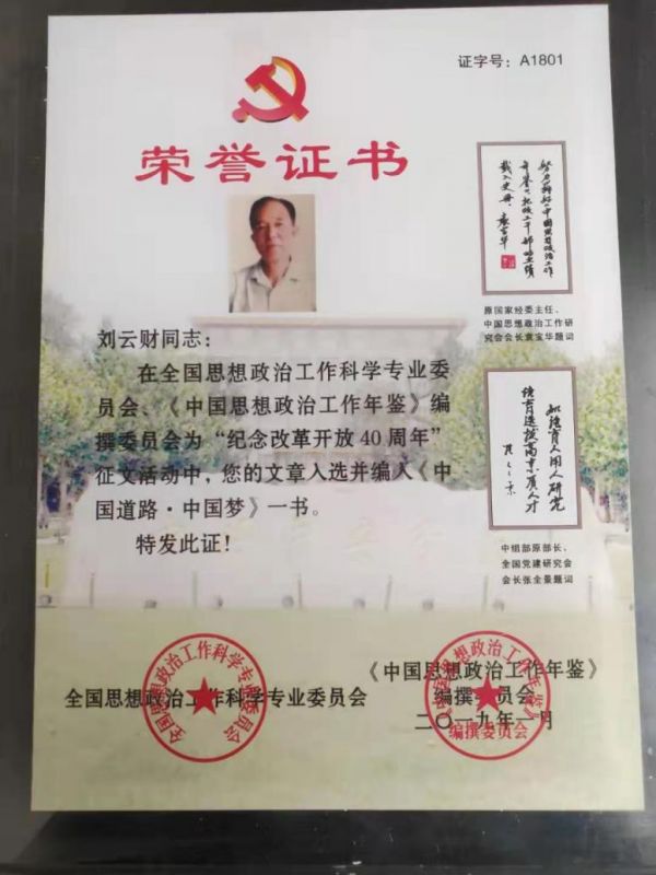走进新时代,踏上新征程,砥砺奋进,扬帆起航。新时代发展的浪潮中,一大批勇于创新的企业家茁壮成长,民营企业家更珍视自身的社会形象,热爱祖国、热爱人民、践行社会主义核心价值观,弘扬企业家精神,做爱国敬业、创业创新、回报社会的典范。刘云财作为一名优秀民营企业家,不忘初心,砥砺奋进,发扬爱国奋斗精神。展示新时代民营企业家的独特风采。