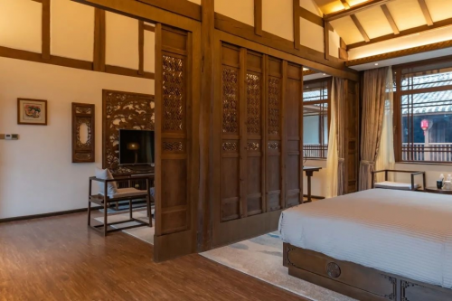 满足城市人的“乡愁”情怀是泊心云舍的基本功能,而以此支点撬动民宿产业的蓬勃发展,才是它最大的能量。短短4年,泊心云舍从大理辐射到丽江、三清山、香格里拉,分别开设了大理泊心云舍·MCA、丽江泊心云舍·文苑、三清山泊心云舍·山墅、香格里拉泊心云舍·稿公府四家分店。
