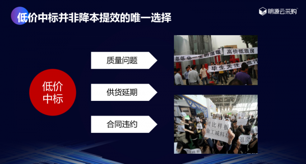 其实,从真实的采购环节来看,低价中标往往会衍生一系列问题:如质量问题、供货延期、合同违约等等。现实中发生过许多通过低价中标,衍生出严重的交房维权现象,对品牌、销售都会产生很大的影响。