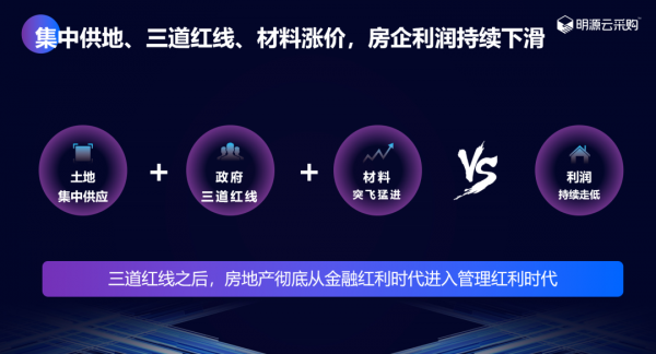 目前,大部分的地产项目面临的一个现状是,工期短,进度紧张,采购任何时候都要第一时间响应,供货,协调供应资源,在成本的压力之下,常常以速度换时间。长期的效率难以提升,面临较大压力。