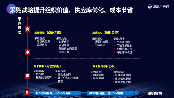 通过采购战略拆解,我们把整个采购品类分成了四个方面:
