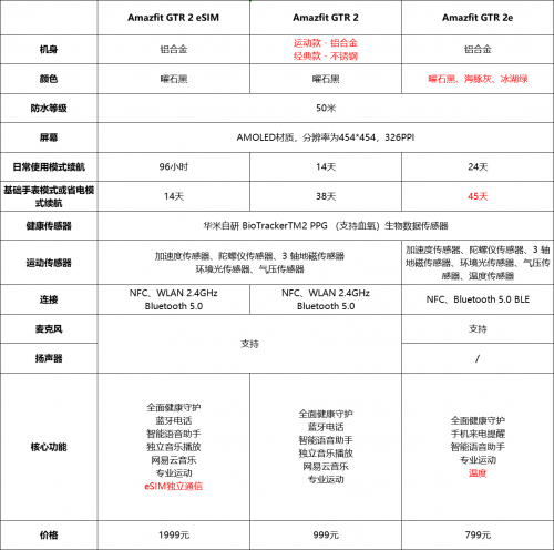 那么,Amazfit GTR 2、Amazfit GTR 2 eSIM、Amazfit GTR 2e,这三款产品到底应该怎么选择呢?