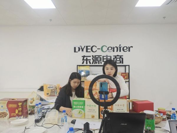 近年来,东源积极与大型电商平台合作,构建了“政府+平台+企业”联动协作机制,联合微信、抖音等新媒体平台和鲜农哥、农品穗、拼多多等电商平台开展东源产品电商直播活动,共同促进农产品线上销售。同时,东源县依托特色农副产品资源在各大平台开设特产馆、旗舰店,促进东源特色产品销售。为了挖掘电商直播在营销方面的巨大潜力,东源县还打造了东源农产品直播基地,积极拓宽农产品销售渠道。特别是疫情期间,针对上莞镇果农面临桔子滞销的紧迫局面,东源县政府与德翔等相关电商企业合作,引进鲜农哥和农品穗直播助农团,通过现场直播、线上销售等方式开展助农销售,首日销量就达20000余斤。2020年,东源县结合茶叶、板栗、蓝莓、桔子上市之机开展直播活动10余场,通过直播等新模式销售农产品逾50万元。