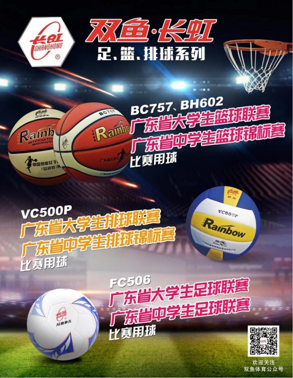 为深化体教融合,促进青少年健康。双鱼-长虹近年来致力于校园体育的发展,其生产的足球、篮球、排球产品为各年龄段学生群体赛事以及校园青训提供器材支持,如广东省大学生运动会、广东省大学生、中学生足篮排球赛事及广州市青少年篮球锦标赛及各类青训赛事等。