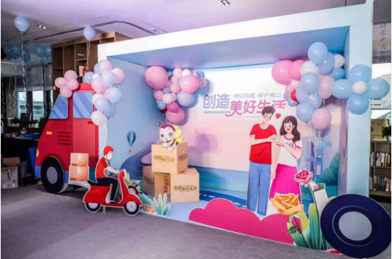 本次活动结合快递行业属性,别出心裁地打造了“幸福货车”概念,在专场布置上采用马卡龙粉红色系,让单身男女化身“勤劳的小蜜蜂”在幸福的货车中穿梭,寓意“寻找幸福,满载而归”。到场领导们绘就背景沙画、归位“幸福包裹”,寓意“绘出美好生活,创造美好生活”。