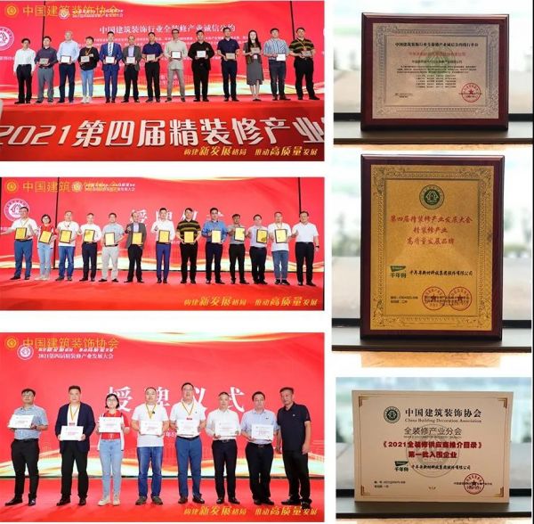同时,千年舟集团喜获《中国建筑装饰行业全装修产业诚信公约》践行单位、《2021全装修供应链推介目录》第一批名单、《中国建筑装饰行业企业品牌价值》等三项荣誉,再次凭实力刷新品牌荣誉榜。