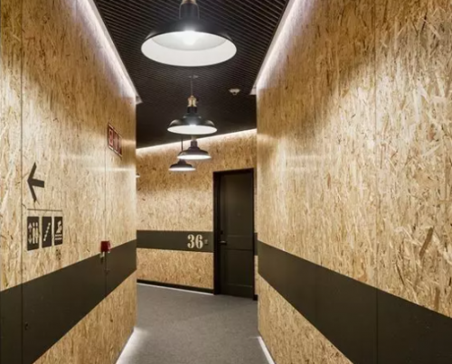 澳思柏恩OSB的另一个很酷的用途是装饰墙面。具有丰富肌理感和幻变感的视觉效果,赋予了该材料大面积纵向使用的天然属性,OSB上墙绝对设计感爆表。