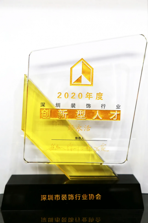 本次当选“2020年度深圳市装饰行业创新型人才”,是对其在设计道路上近二十载的坚守与创新不断所取得的成绩的极大肯定。作为行业创新型领军人物,其深耕建筑装饰设计行业近20载,积极参与行业建设,推动行业发展,鼓励行业技术研发,致力培养设计人才及精英团队,锐意进取、开拓创新。