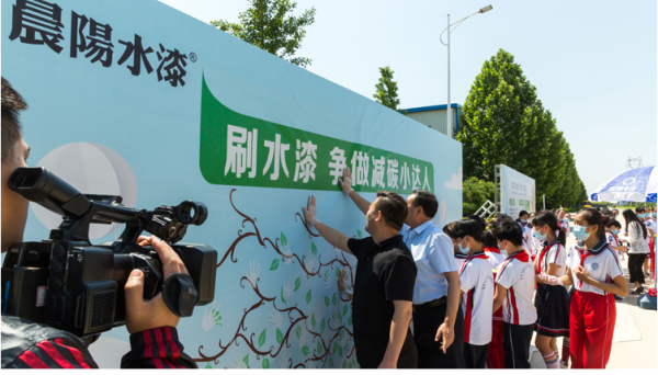 5月30日,中国水性涂料产业战略联盟、中国水漆研究院联合河北省绿色名片企业——晨阳水漆,共同举办“刷水漆,争做减碳小达人”六一主题科普活动,推出——“居美易净味超白2合1”和“居美易净味高遮2合1”两款全新研发内墙水漆产品,并绘就减碳巨幅画面,启动全民减碳行动。