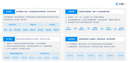 该产品源于阿里巴巴内部核心团队强大的错误捕获技术及友盟+超强的数据处理能力,保障U-APM为客户提供稳定可靠的性能监控与测试服务,同时其能够支持秒级响应的项目服务群实时帮助开发者解答问题,并在SDK隐私合规问题等方面能够提供协助排查,支持技术接入,后期也会提供技术专家的咨询解答,从而杜绝开发者的后顾之忧。