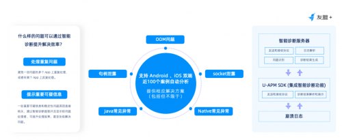 如今行业中如友盟+U-APM可以帮助开发者通过2行代码实现SDK的集成,从而获得实时监控、智能告警、用户细查和云真机测试等诸多能力。