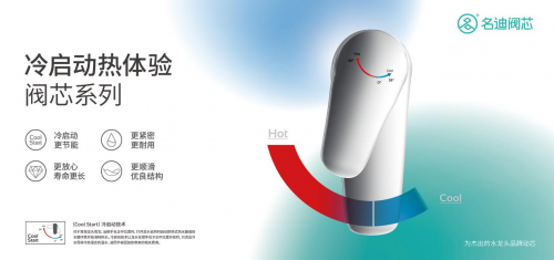 名迪为本次展会带来了潜心研发的五大新品,分别为按压阀芯、按压调温阀芯、冷启动热体验阀芯、灵敏度阀芯、面盆专用阀芯五大系列。