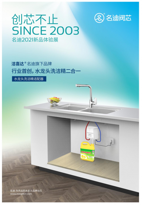 名迪旗下新品牌-洁喜达,也携新品首次亮相厨卫展,本次带来的水龙头洗洁精适配器,其二合一的功能上让人耳目一新,