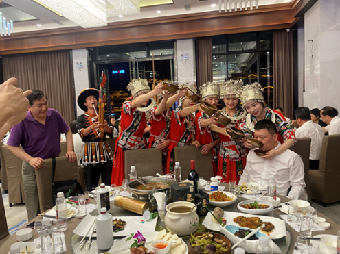 现场贵州特色歌舞、客家礼——高山流水,将晚宴气氛推向高潮。
