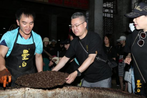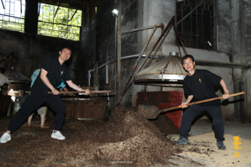 墨白优秀合作伙伴们,在酒厂邬老师和豆豆老师的讲解下,亲自体验“上甑”、“拌曲”、“摊凉”等环节,感受酱酒最复杂的12987工艺,从红缨子糯高粱到一杯醇厚的墨白佳酿,离不开老师傅们的匠心,和时间的酝酿。