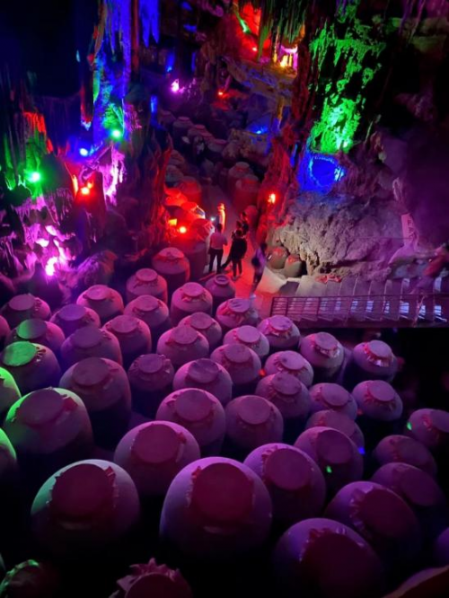 【 6月5日下午,墨白洞藏基地 】,墨白在茅台镇拥有天然溶洞 16 个,墨白合作伙伴们在墨白资深酱酒老师——陈老师带领下,参观规模巨大的地下溶洞群,了解获得了国家专利的生态洞藏法。