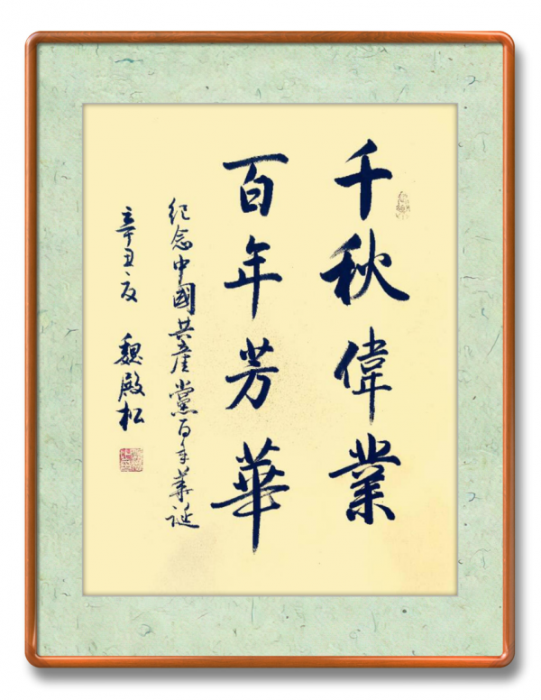 值此中国共产党建党100周年的伟大时刻,作为新中国呵护成长起来的老党员,为了歌颂中国共产党的丰功伟绩,魏殿松用自己的书法语言表达着一名四十余年老党员对党母亲的歌颂与崇敬。