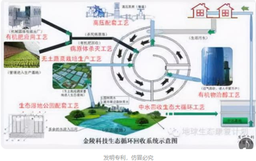 湖南金陵科技是一家致力生态回收的公司,其主要的工艺是厌氧发酵,微生物治理,微生物局部增温,它解决的主要问题,是水冲厕所里面的粪便、垃圾分类的主要矛盾,餐厨垃圾、腐烂瓜果等有机物,在第一时间进入回收系统,将它产生的生态能源气,全回收形成储存、加压、过滤,并网生产链,有机肥脱水后,进入有机肥工厂,养殖蚯蚓,养殖青蛙,增加其他元素加工变成高档机肥,包装出厂,形成生态链,中水回收系统进入冲厕用水,园林用水,进入垂钓中心游园,无土蔬菜栽培生产链。