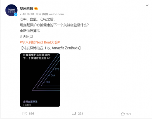 今天下午三点,华米科技将于合肥举行The Future of Health·Next Beat 2021 发布会。届时,华米科技官方视频号、官方微博,网易、快科技、富途牛牛、IT168、斗鱼等多个平台将进行同步视频直播。根据早前披露的信息显示,本次Next Beat大会,华米科技将发布新一代黄山芯片、自研可穿戴操作系统以及全新血压算法。