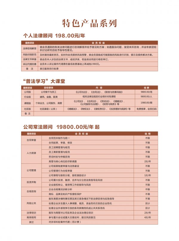 “金牌法务”结合自身独有优势资源,以线上、线下多渠道对会员制客户的海量积累与持续互动,着眼于法律非诉业务的精耕细作与诉讼案源的深度挖掘;坚持横向整合国内各大知名律师事务所及民事、刑事领域的资深律师与教授专家团队,纵向深入探索“线上与线下并行、服务与需求同步、专业与配套联运”的法律服务新思路,致力于为广大百姓提供“零距离、低成本、高效率”的一站式普惠法律服务。