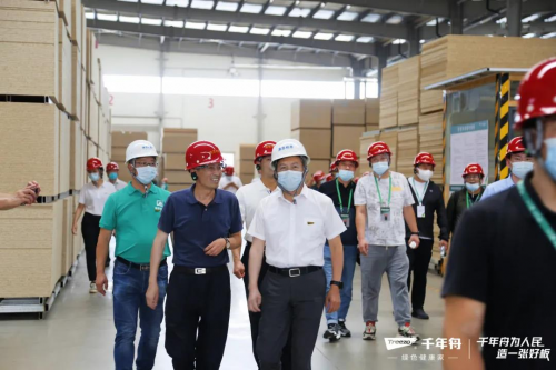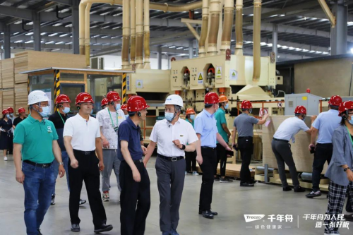 7月22日上午,来自全国各地的行业大咖、合作伙伴、当地消费者近300人齐聚山东郯城,来到千年舟集团旗下澳思柏恩郯城智能工厂参观交流,千年舟集团董事长陆铜华、副总裁田茂华对大家的到来表示热烈欢迎,并带领参观工厂,就OSB板的发展趋势与现下家装市场的趋势进行交流。