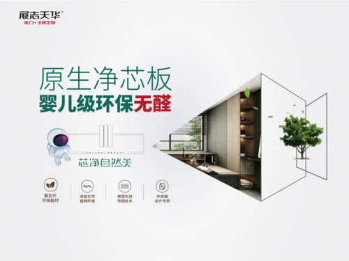 展志天华净芯定制,采用自主研发环保5.0标准新板材,原生净芯板不仅可以达到无醛添加,更整合了植物纤维,设计质感优秀,非常适合主流极简风产品。