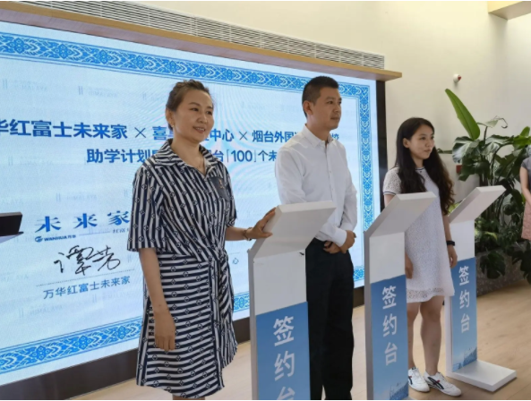 7月17日,万华红富士与喜马拉雅“未来人居计划”签约仪式,在烟台市“阳光100”顶层的“喜马拉雅天空club”举行。