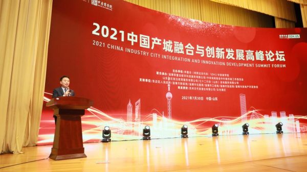 2021年7月30日, 由中房商学院和师董会主办的2021中国产城融合与创新发展论坛在山东淄博召开,国务院发展研究中心原副主任侯云春、住建部原总经济师、住建部科技委常务副主任李秉仁、国务院参事室公共政策研究中心理事长胡本钢、淄博市副市长赵剑、中房商学院副院长邓明政、师董会董事长胡海平等领导、专家及来自全国的500多位房企、金融企业、产业平台代表共同出席了本次论坛,中房商学院邓明政代表大会主办方作大会开幕致辞。