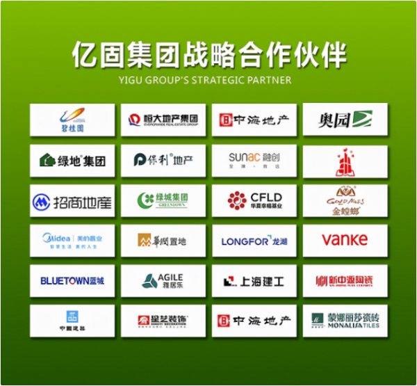 目前亿固所研发生产的产品涉及塑料工业、高聚物干拌水泥基材料工业、五金工业等多个领域;产品分彩色填缝系列、瓷砖粘贴系列、界面处理系列、防水材料系列、墙体保温系列、以及渗漏修补系列。由于企业的产品品种丰富,质量上乘,均达到国家标准以上,因此在市场上倍受欢迎。特别是专业的工程商,更是认准了亿固瓷砖胶等辅材,知名房地产企业碧桂园、中海、融创、奥园、恒大集团等房地产巨头均与亿固达成战略合作关系。