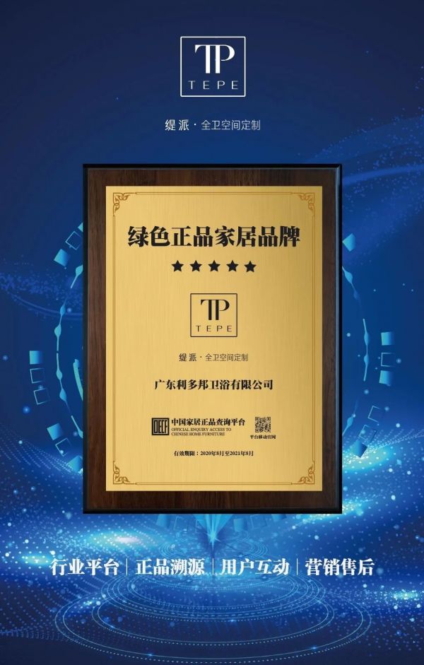 经过去年上半年时间的资质审查、制造基地、产品、原料等一系列详细检验,缇派卫浴已全面上线中国家居正品查询平台!(与平台统一标识形象面向终端)