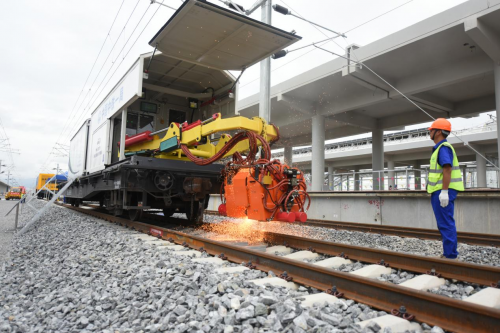 “之所以能听到‘咣当咣当’的声音,是因为车轮碰撞钢轨接缝的声音,而现在我们都将钢轨连成了一个整体,所以就听不到这样的声音了。而要将钢轨焊接成一个整体,这就需要我们钢轨焊接成套设备及工艺。”新运公司设备管理公司总工程师高林解释道。