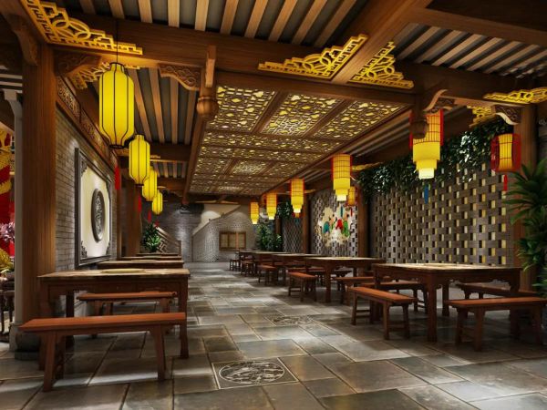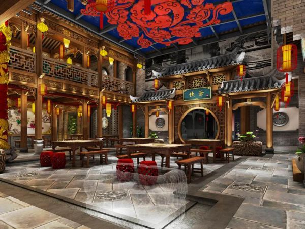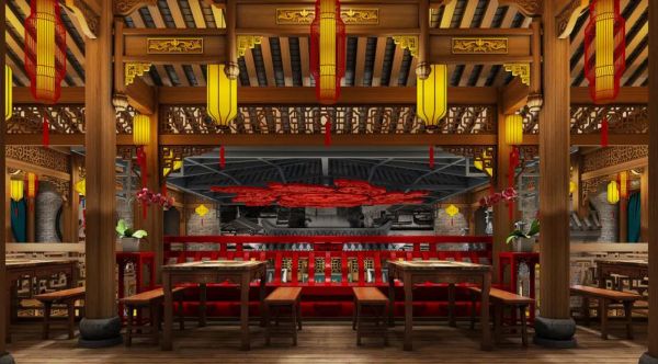 A red auspicious cloud pattern is made on the ceiling, which means that the hot pot shop is booming. A plant landscape is placed in each of the four corners, and the elaborate design of carved beams and bricks all around brings people into the atmosphere of ancient capital restaurants.