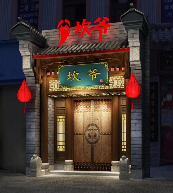 The door of Kanye hot pot restaurant integrates Sichuan and Chongqing chili elements, white walls, grey tile cornices, green brick and red light carved windows, with its own humanistic temperament, mixed with the aroma of hot pot, adding a bit of vulgar and elegant charm.