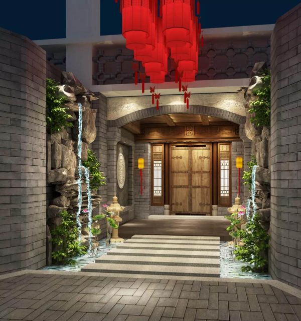 The entrance passage is an independent gray brick and stone path. The set of towering fake stones and artificial waterfalls on both sides seems to have done a lot of ostentation for welcoming guests. It feels like entering the "small garden fragrance path".