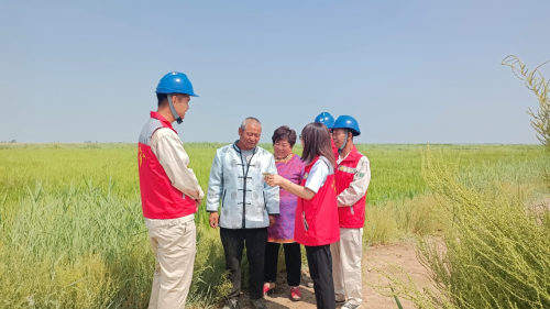 为支持锦旗村的农业产业改革,五原分局主动对接村书记莎仁高娃,提前掌握水稻种植所需的电力供应情况,为锦旗村架设线路3公里,安装一台500KVA变压器,及时保障水稻种植所需的电力供应。2021年7月,正值黄河汛期,连夜大雨导致黄河水势猛涨,眼看就要将河头地上村里的两台变压器冲走,套海供电所所长紧急办理工作票,在做好安全措施后,连夜冒雨带领职工将变压器撤回,并待水势退后重新安装,挽救了村民的经济损失。为保障稻田按时浇灌,分局又为锦旗一社、二社扬水站安装两台200KVA变压器,1台500KVA变压器。在2021年农网改造期间,由于牧民居住分散,以及新增养殖户较多,用电负荷急剧增大,分局又为锦旗村改造3台、新装1台变压器,更换新的10-12米电杆212基,70mm²绝缘导线5.6千米,保障了牧民们生活生产用电安全稳定。为了让村里年纪大、语言又不通的牧民及时了解各类服务政策,分局志愿者们经常来到田间地头,为大家讲解新的电价政策、缴费方式,提供网格化服务。每次看到黄色的电力车来,牧民们都亲切的招手说“亲人们来了”。