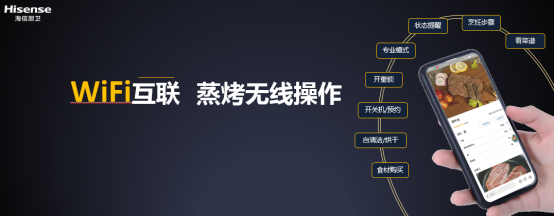 C501TI蒸烤箱还支持Wifi互联,手机远程操作,链接手机“海信爱家APP”,即可远程无线操作蒸烤箱,体验8项智慧功能(食材购买-自清洁/烘干-开关机/预约-开童锁-专业模式-状态提醒-烹饪步骤-看菜谱),从烹饪源头一键智能化操控,让新手小白也能完美驾驭各大菜系,让你轻松秒变大厨,坐等美食出锅即可。
