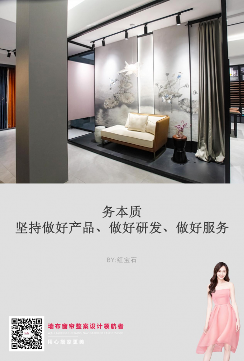 红宝石并非最早进入墙布市场的企业,更是窗帘领域的后生,但我们开创了多个行业先河。首先是行业第一个推出“产品质量&环保”险的企业,同时研发“彩经工艺”,将墙布的色彩美学提升到与壁纸媲美的水平,也算是对行业作出了应尽的贡献。