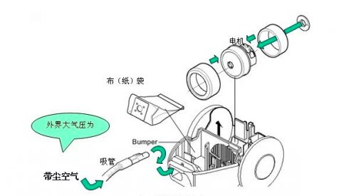 吸尘器的机体内安装有专用的驱动电机和马达,只要打开吸尘器的开关就可以运作了,通过马达高速运转,可以令周围由叶片组成的叶轮高速转动,使吸尘器内部产品瞬间的真空,进而和外部的大气压形成负压差,在负压差的影响之下,可以形成一定的真空吸附力,将吸嘴附近的灰尘和垃圾杂质等吸入尘盒中,以完成集尘工作,呈现良好的除尘效果。