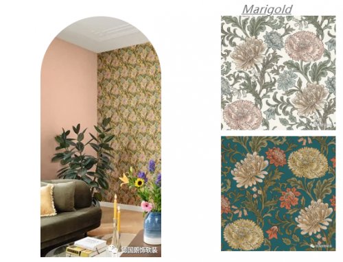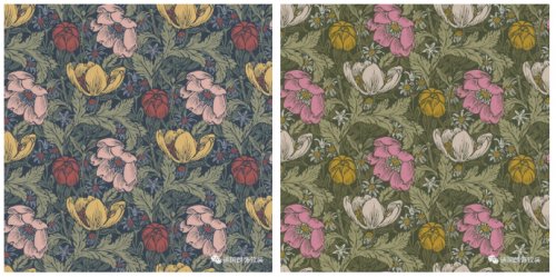 浅浅的粉色、嫩黄色、满满的少女感,每一朵花,每一片叶子,都有灵动的姿态,仿佛在随风摇曳。亦或是鼠尾草绿与墨蓝色相结合,营造出深沉怀旧的复古感。