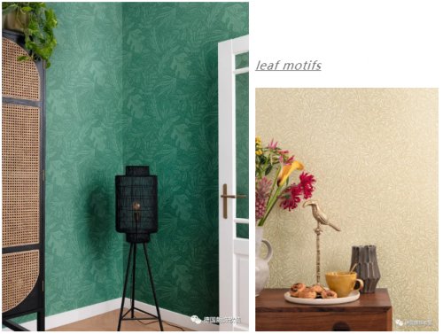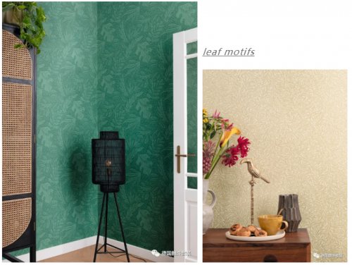 装饰性的枝条、花叶相互缠绕、设计师将其进行了放大再处理,精细繁复的图案组成了一种密不透风的肌理,颇有自然气息和欧洲田园风。